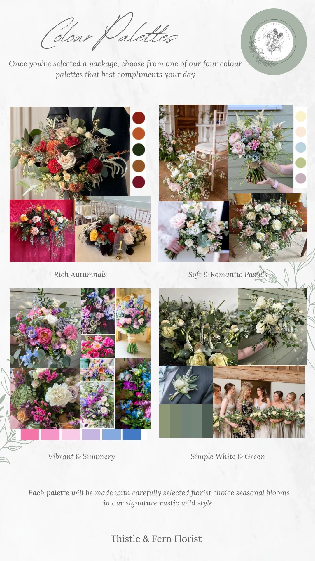 Contact us by filling out the form below with the date of your wedding and the package you wish to order along with your selected colour palette. Please note we cannot guarantee any specific flowers for this service.
